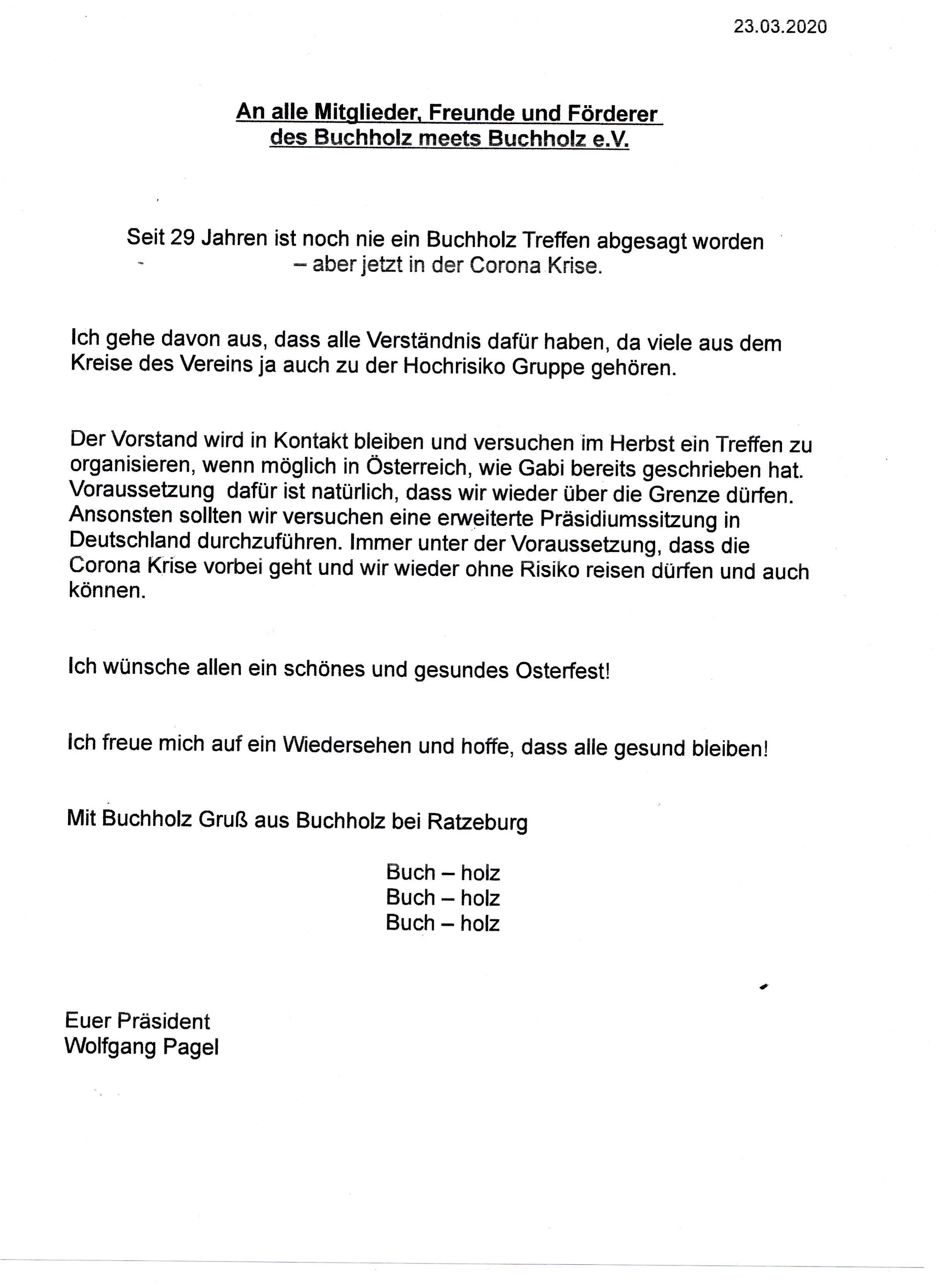 Auch unser geplantes Buchholztreffen in Treffen am Ossiacher See musste leider abgesagt werden.