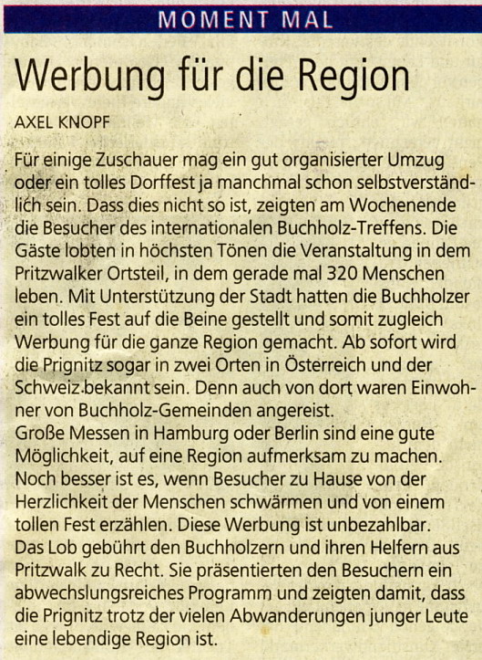 Vom 08.06. bis 10.06.2007 fand das achte europaweite Buchholz - Treffen in Buchholz, Stadt Pritzwalk in der Prignitz statt.