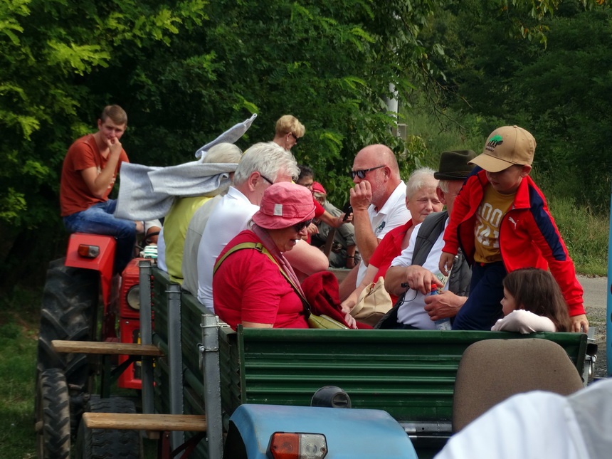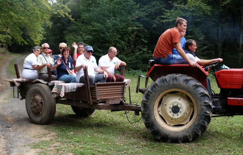 Ankunft am Gemeindehaus in Boholt mit dem landestypischen „Markt“. Gegen 13:00 Uhr ging es dann zum Mittagessen ins Restaurant „La Casuta“. Diesmal wurden wir auf der Terrasse bewirtet. Essen und Trinken waren wieder toll. Danach fuhren wir zurück nach Boholt. Zuerst ging es mit drei Trecker in den Wald zu einer Thermalquelle und einer 300 Jahre alten Eiche. ![]()