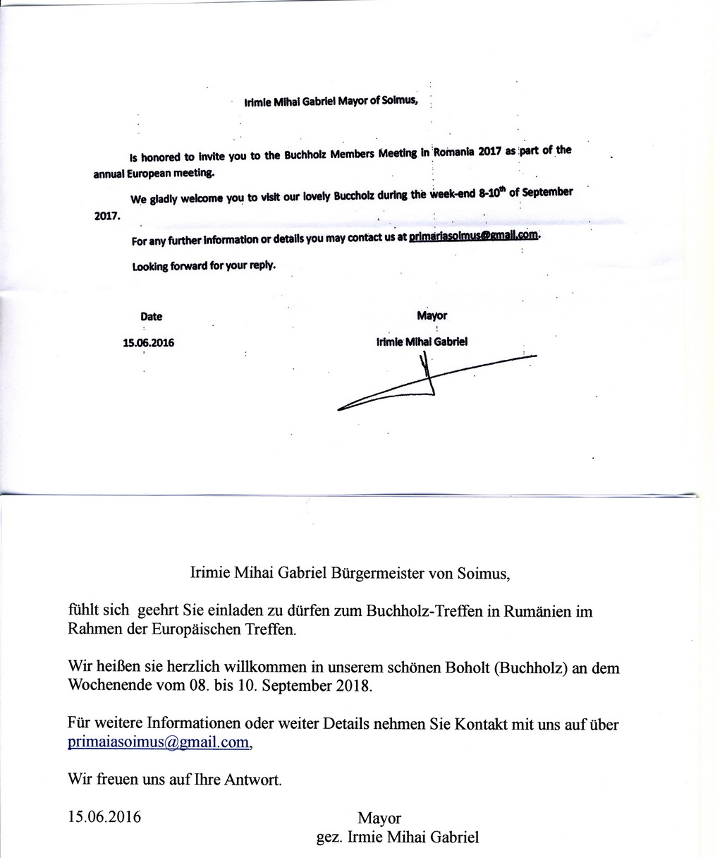 Wir laden herzlich alle Buchholzer aus nah und fern und alle interessierte Gäste zu uns nach Soimus/ Boholt ein.