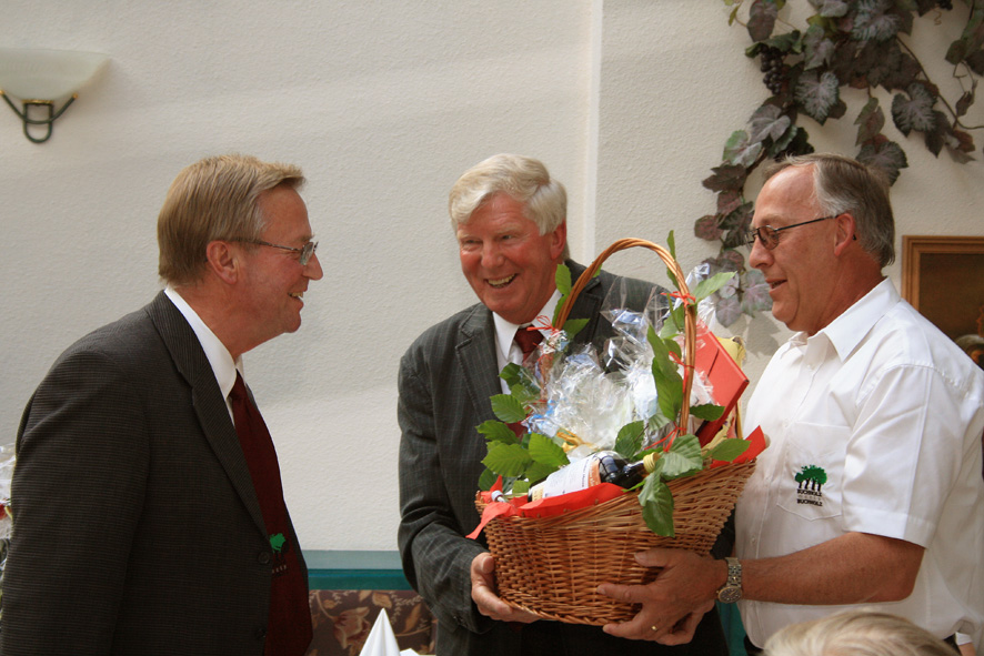 hätten. Die Tafel hieß dort nur noch das „Speckbrettl“. Nun übergibt die Abordnung aus Buchholz/ Waldkirch noch einen Präsentkorb an Fredi und Karin Petzold als kleines Dankeschön für die Einladung nach Annaberg – Buchholz.
