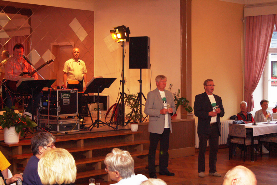 Nun liest Klaus Doerks eine Grußbotschaft des OB von Pritzwalk vor und übergibt von ihm ein kleines Geschenk an Karin Petzold und an den Schriftführer Helmut Mai.