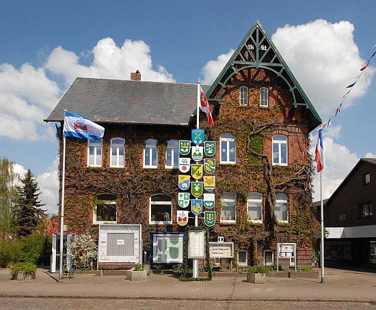 ![]() Ort besuchen.Durch seine Zugehörigkeit zum Kirchspiel Burg unterhält Buchholz zwar von jeher eine enge Beziehung zur Nachbargemeinde, doch bietet die Kommune selbst zahlreiche Möglichkeiten zur Freizeitgestaltung. Etliche Vereine und Verbände tragen zur aktiven Dorfgemeinschaft bei. ![]() Luftaufnahme von Buchholz <<<<<<<<<<<<<