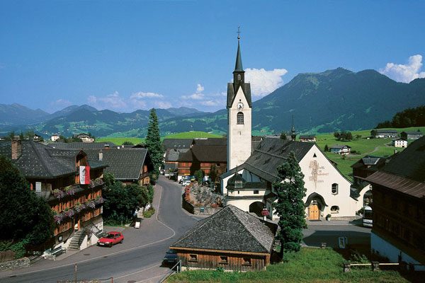 Sein sehenswerter Dorfkern wird dominiert von der Pfarrkirche, dem Tanzhaus und von stattlichen Gastund Bauernhäusern in traditioneller Holzbauweise.
