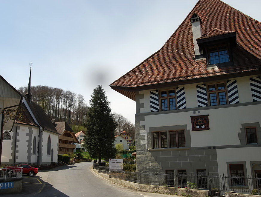 weiter ostwärts bis an den Sensebogen bei Thörishaus. Sie umfasst dabei nur gerade den rund 500 m breiten Talboden links der Sense. Erst nach der Erstellung eines Hochwasserdammes im Jahr 1911 konnte der Talboden, der früher oft überschwemmt wurde, besiedelt werden.