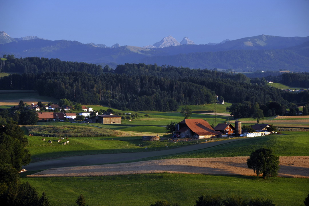 ![]() Steilhang auf das offene Hochplateau von Wünnewil und reicht im Westen bis auf die Egg (651 m ü. M.).