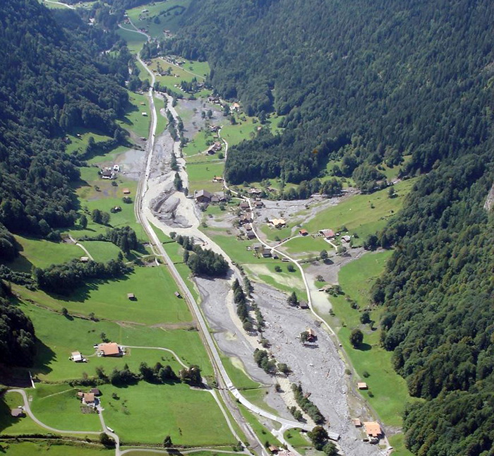 Das Hochwasser der Schwarzen Lütschine vom August 2005 verwüstete grosse Teile des Dorfes schwer.