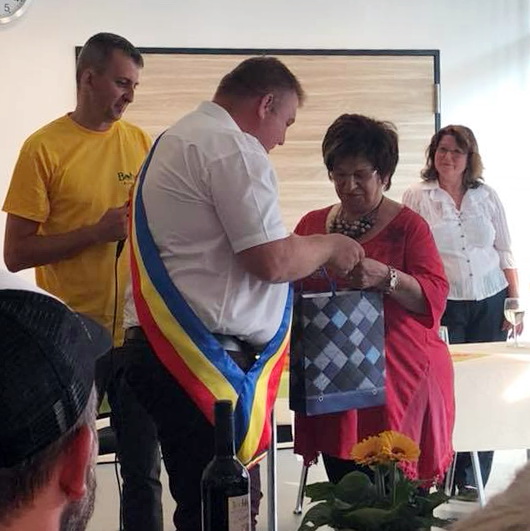 Links: Der Bürgermeister Irimie überreicht die Präsente.